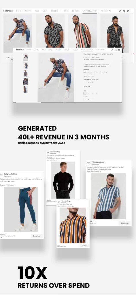 7shores is a Premium Apparel Startup based out of Mumbai dealing in Men’s Fashion. Our goal was to build the website and generate profitable ROAS using Facebook and Instagram Advertising.