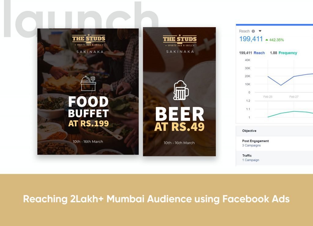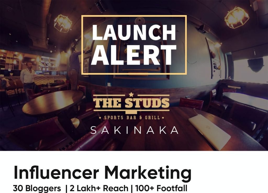 The project was to generate a buzz of a new launch in Sakinaka for – THE STUDS having its unique sports bar theme. We are able to generate more than expected reach using Influencer marketing and Instagram Promotion. Having a strict selection of high-profile influencers with local audiences gave more footfall.